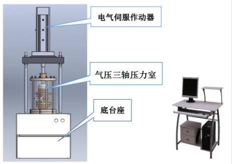 本系統由加載主機(含夾具及三軸壓力室)、電液伺服加載系統、氣壓控制系統、測控系統、計算機控制和處理系統等部分組成。